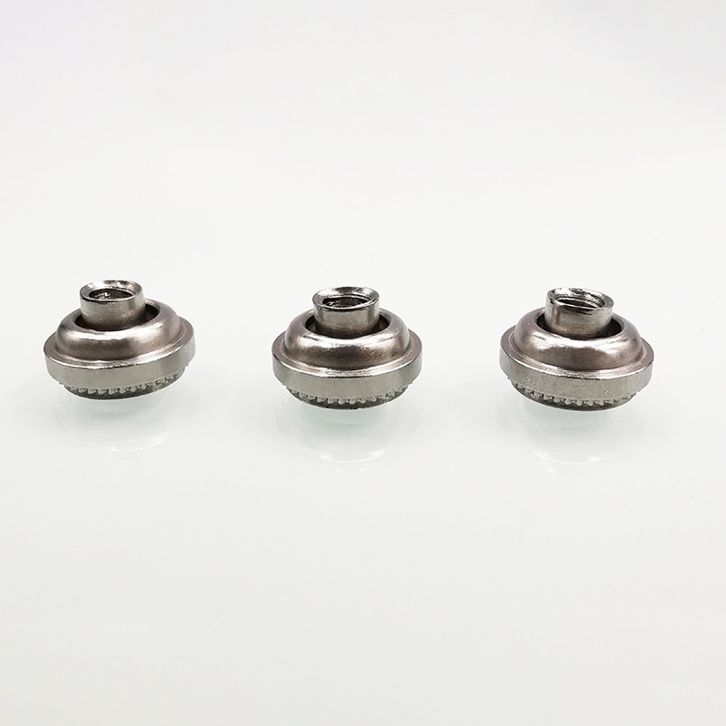 A: De 300 -serie roestvrijstalen drijvende slot Long Clinching -moer heeft een ‘drijvende slot’ functie waarmee het een beetje kan slingeren wanneer het wordt ingevoegd. Wanneer het paneel of het bevestigingsgat niet perfect is uitgelijnd en er een lichte afwijking is, kan het drijvende slot worden gebruikt om aan te spannen.