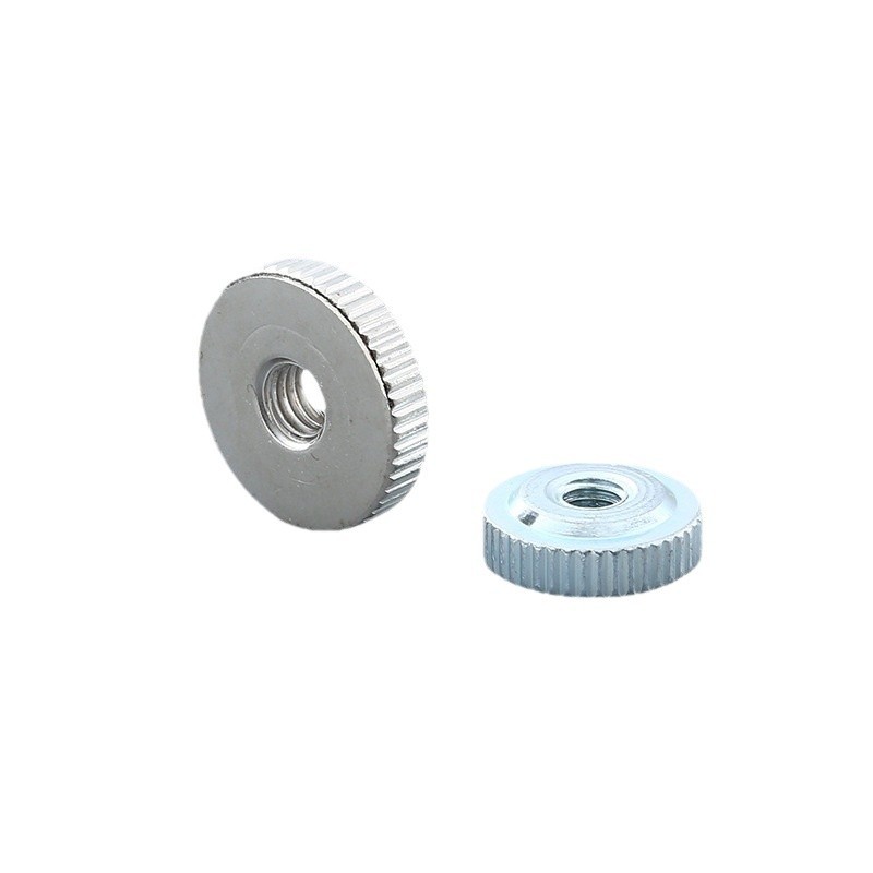 Deze gepolijste kartelmoer heeft standaardspecificaties die geschikt zijn voor de meeste lichte tot middelzware toepassingen. De schroefdraadmaten omvatten zowel metrische als imperiale typen; metrische maten variëren van M2 tot M10, en imperiale maten zijn 1/8" tot 3/8". De buitendiameter en dikte variëren afhankelijk van de draadgrootte, net genoeg om een goede handgreep te bieden bij het draaien.